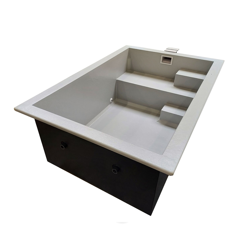 Der Mini Club ist extrem robust und besteht aus einer soliden Sandwich-Konstruktion mit beidseitig unverwüstlichem, dickwandigem Fiberglas, das mit einer dicken Schicht spezieller Poolbeschichtung versehen ist. Der nachhaltige Charakter und die bewiesene lange Lebensdauer machen ein Plunge-Pool attraktiver denn je.